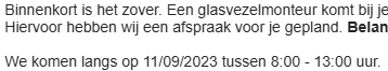 Dat maakt niet uit ​@TDN , als je maar aangekleed opendoet als ​@Ik_Combineer aanbelt 😉. Dit is wel een afspraak in het verre verleden overigens, deze glasvezel zal inmiddels wel werken, (hoop ik 😀)