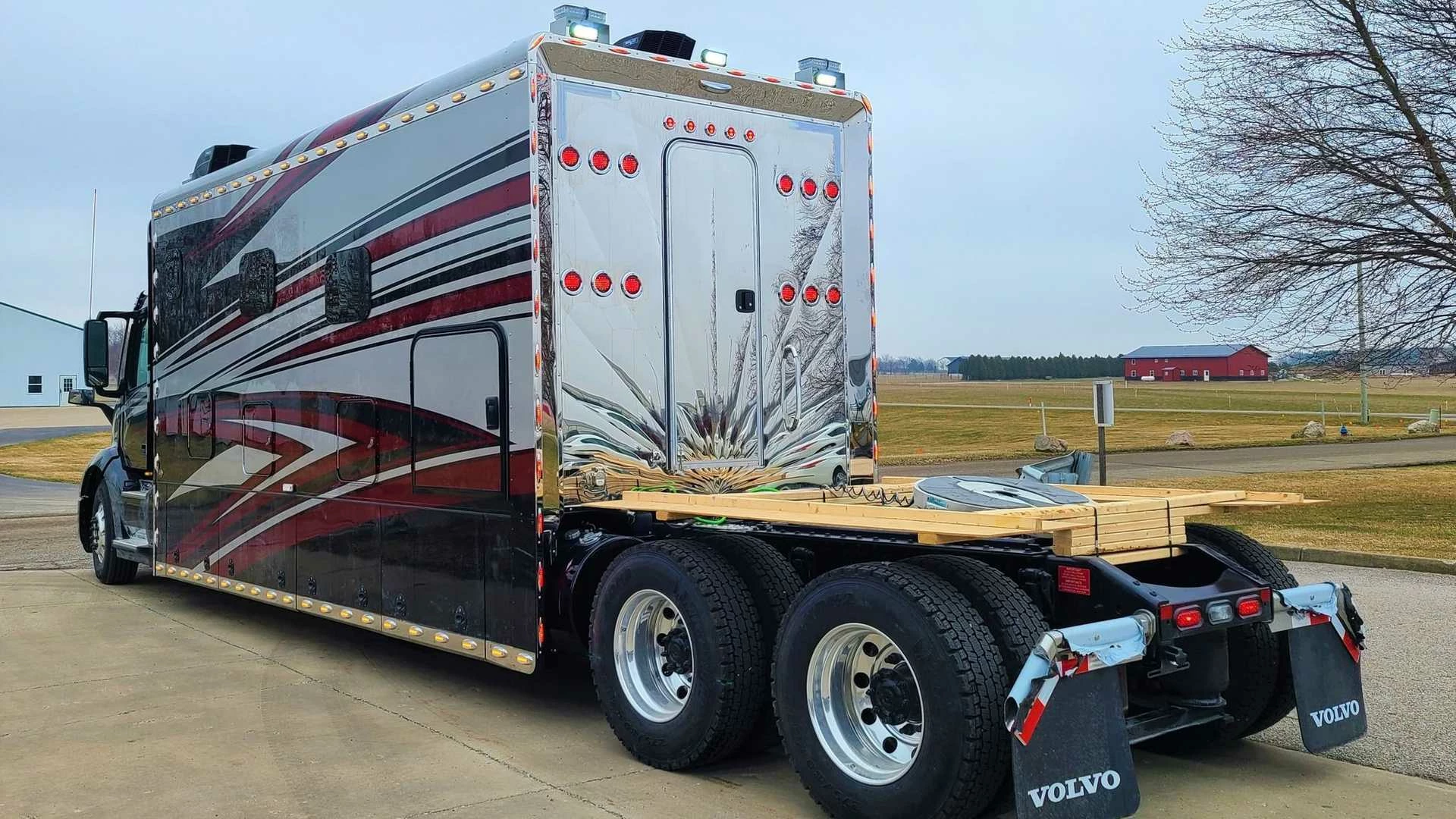 Ik zou hier eigenlijk wel een foto willen zien van de binnenkant van de cabine en oplegger. 😎