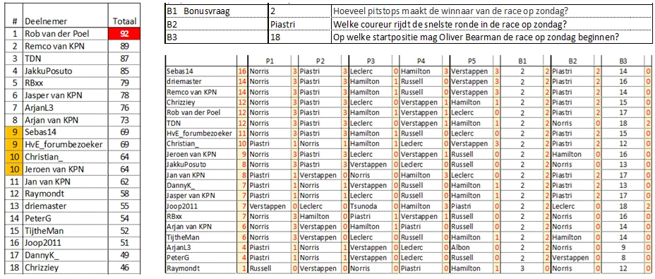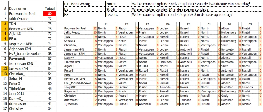 In de tussenstand na Silverstone drie verschillen: ArjanL3 krijgt 76 (ook 1 punt lager dan bij jou) en Joop2011 krijgt 51 punten. Tijtheman met 52 punten ontbreekt op jouw tussenstand.