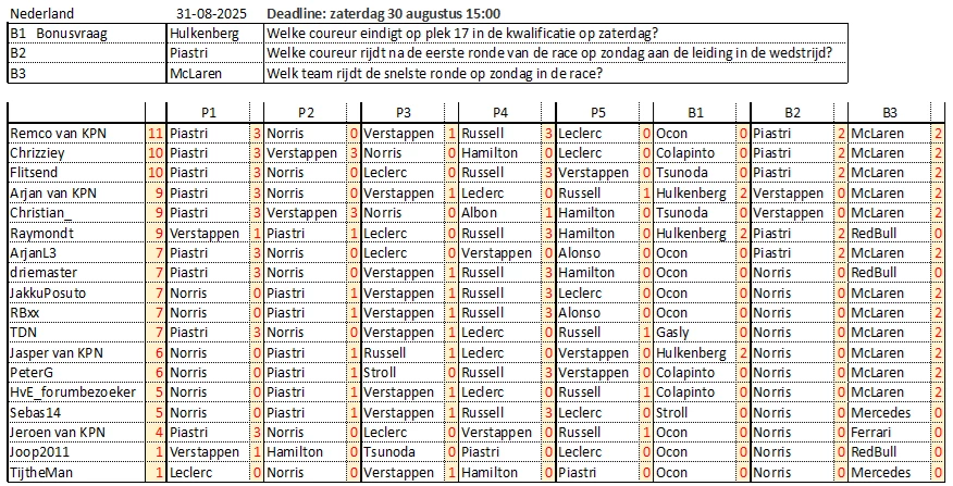Wegens afwezigheid van ​@Jeroen van KPN plaats ik deze keer de officiële uitslag van Zandvoort.