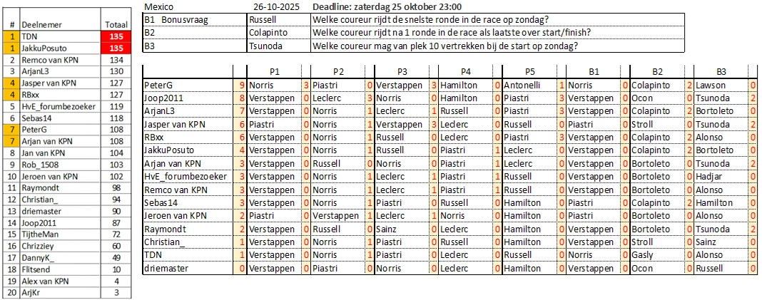 @Jan van KPN 7 punten, ​@Raymondt 5 en ​@HvE_forumbezoeker 5 (ontbrak in jouw lijst).