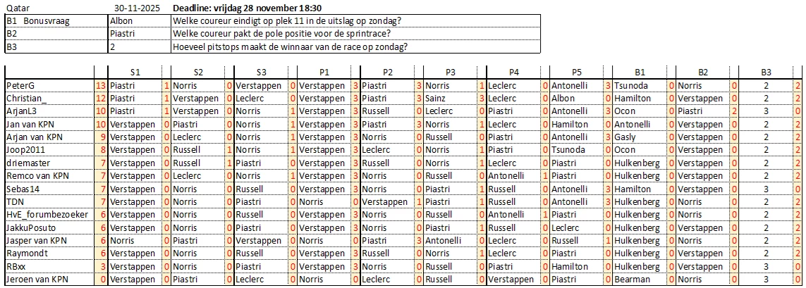 Overigens voorspel ik dat er heibel komt bij McLaren als Piastri net voor Norris ligt en het om een cruciale positie gaat (P4/P3).
