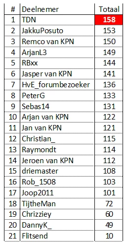 @TDN ​@Jasper van KPN ​@Jan van KPN ​@JakkuPosuto ​@Jeroen van KPN ​@Raymondt ​@Remco van KPN ​@RBxx ​@driemaster ​@ArjanL3 ​@Arjan van KPN ​@PeterG ​@joop2011 ​@TijtheMan ​@Sebas14 ​@HvE_forumbezoeker ​@Christian_