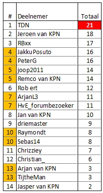 3: ​​​​@RBxx & ​@Jeroen van KPN 10 punten