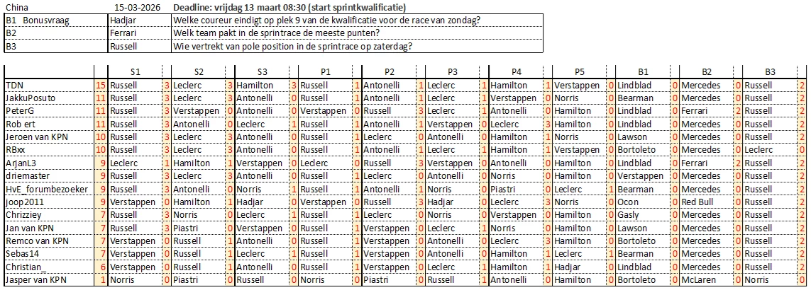 Voor de geïnteresseerden hierbij de details van de uitslag in de KPN F1 competitie: