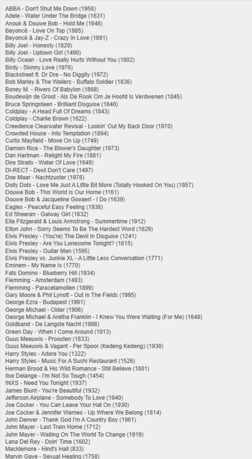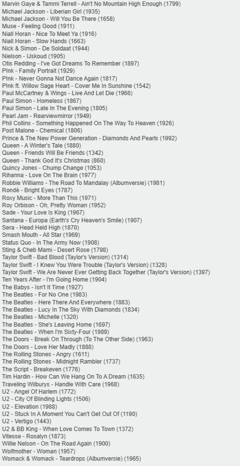Zesmaal Beatles, zesmaal U2, driemaal Queen, viermaal Elvis Presley etc. etc.