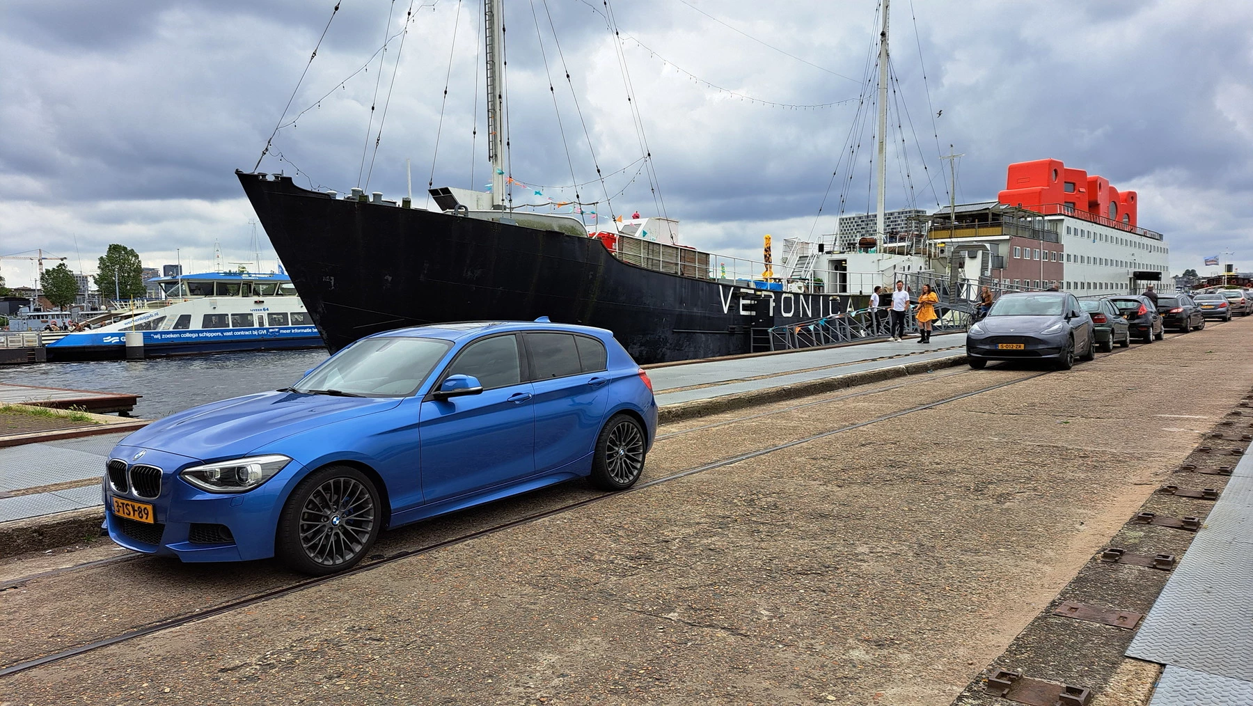 Hij lag een tijdje in een haven in Antwerpen, nu weer in Amsterdam.