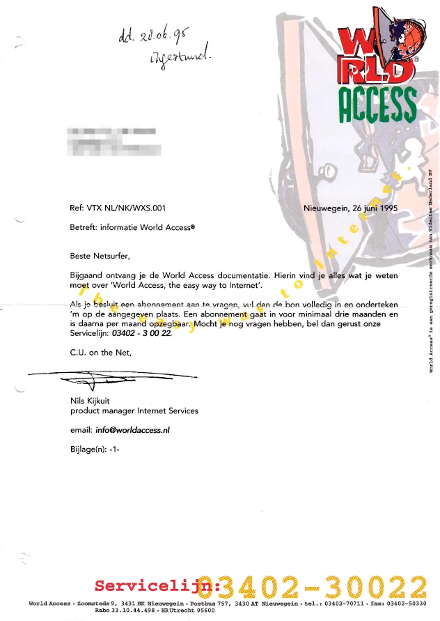 Eind juni 1995 schreef ik mij in, bij toen nog Worldaccess, later WXS, nog weer later KPN.