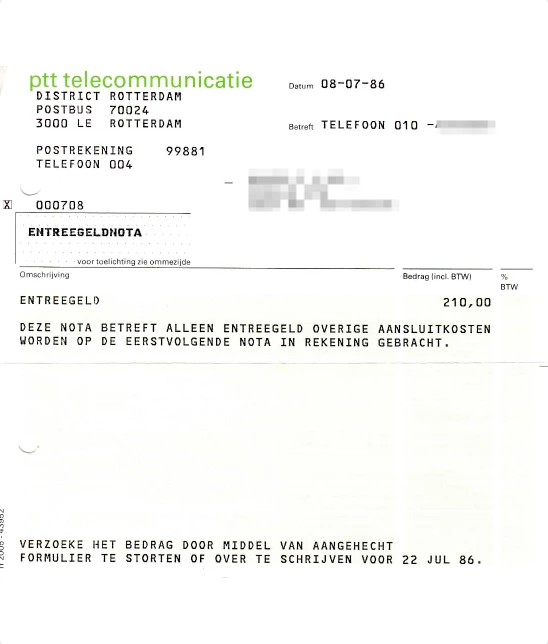 Het gaat terug in de tijd dat PSTN, oftewel analoog de enige manier van bellen was en er bij de PTT nog veel gebruik werd gemaakt van oude PRX/A centrales. VOIP en glasvezel bestonden nog lang niet in de telecomnetwerken, en volgens mij zou het wel iets van de jaren 70 of begin jaren '80 zijn. We hadden nog een driecijferig abonneenummer.