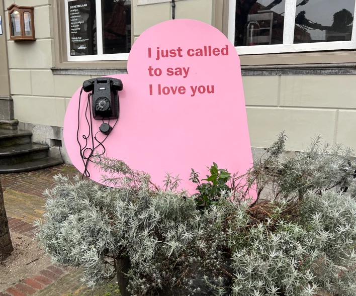 Het bord stond gewoon in een plantenbak voor het restaurant, voor Valentijnsdag, maar niet te gebruiken... Hij was klaar voor gebruik, echter niet aangesloten, de kabel lag, compleet met stekker, tussen de planten.