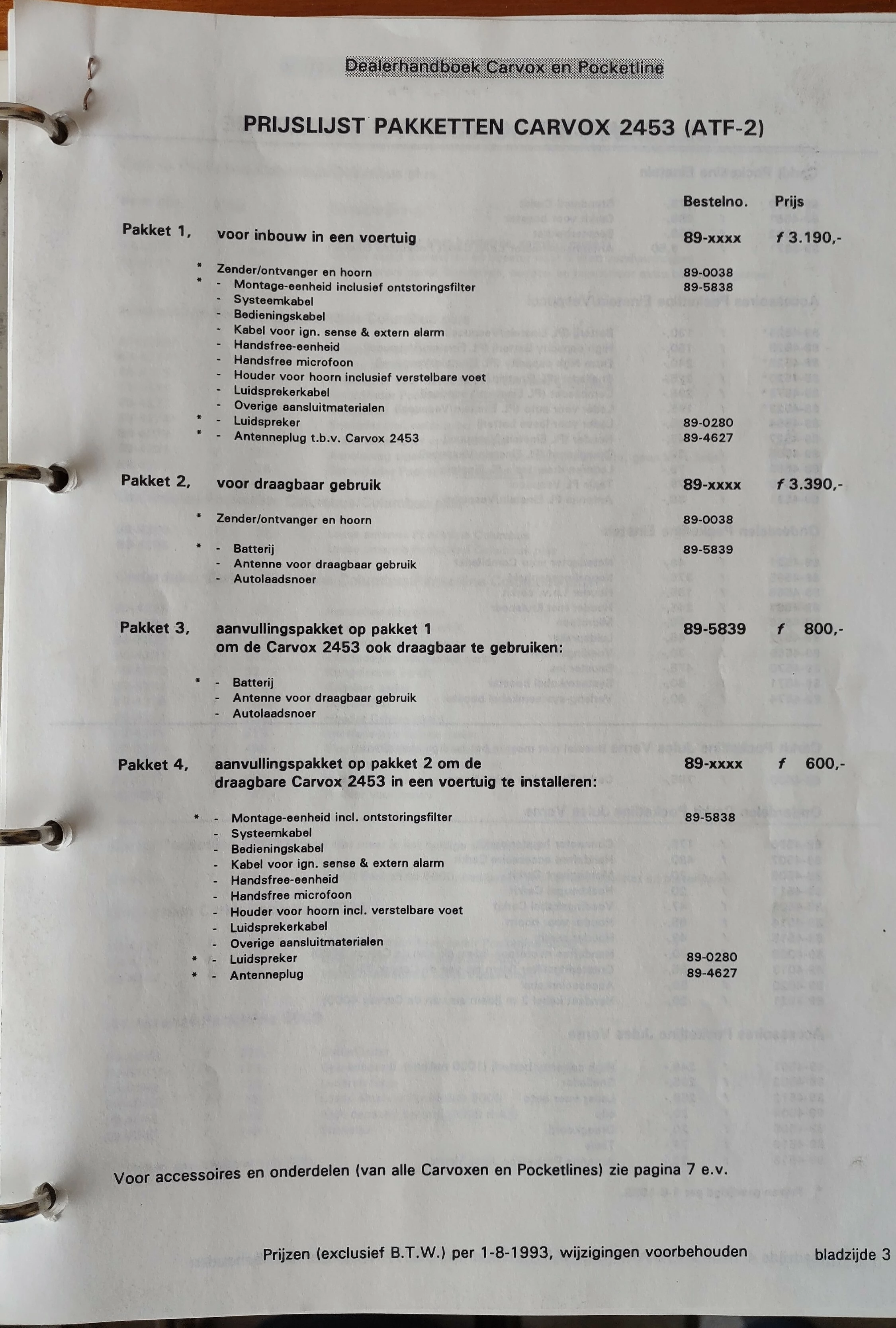 Hieronder een paar foto's van het handboek en de 2453 folder en prijslijst: