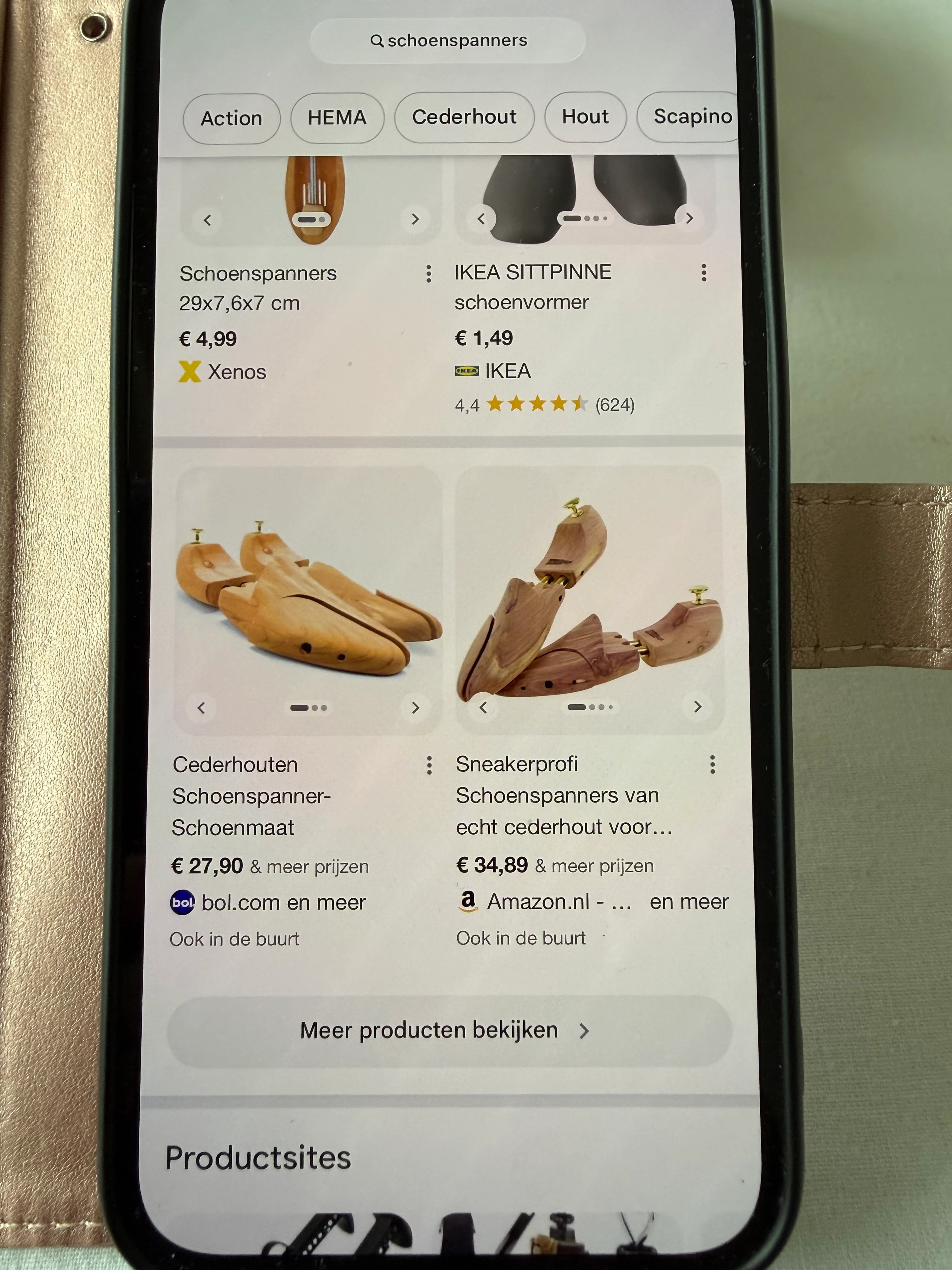 @Shyrin van KPN Mijn vrouw zegt dat die dienen als schoenspanners. De achterkant kan je omhoog klappen, de voorkant in de schoen of laars en dan de achterkant weer inklappen om ze in model te houden.