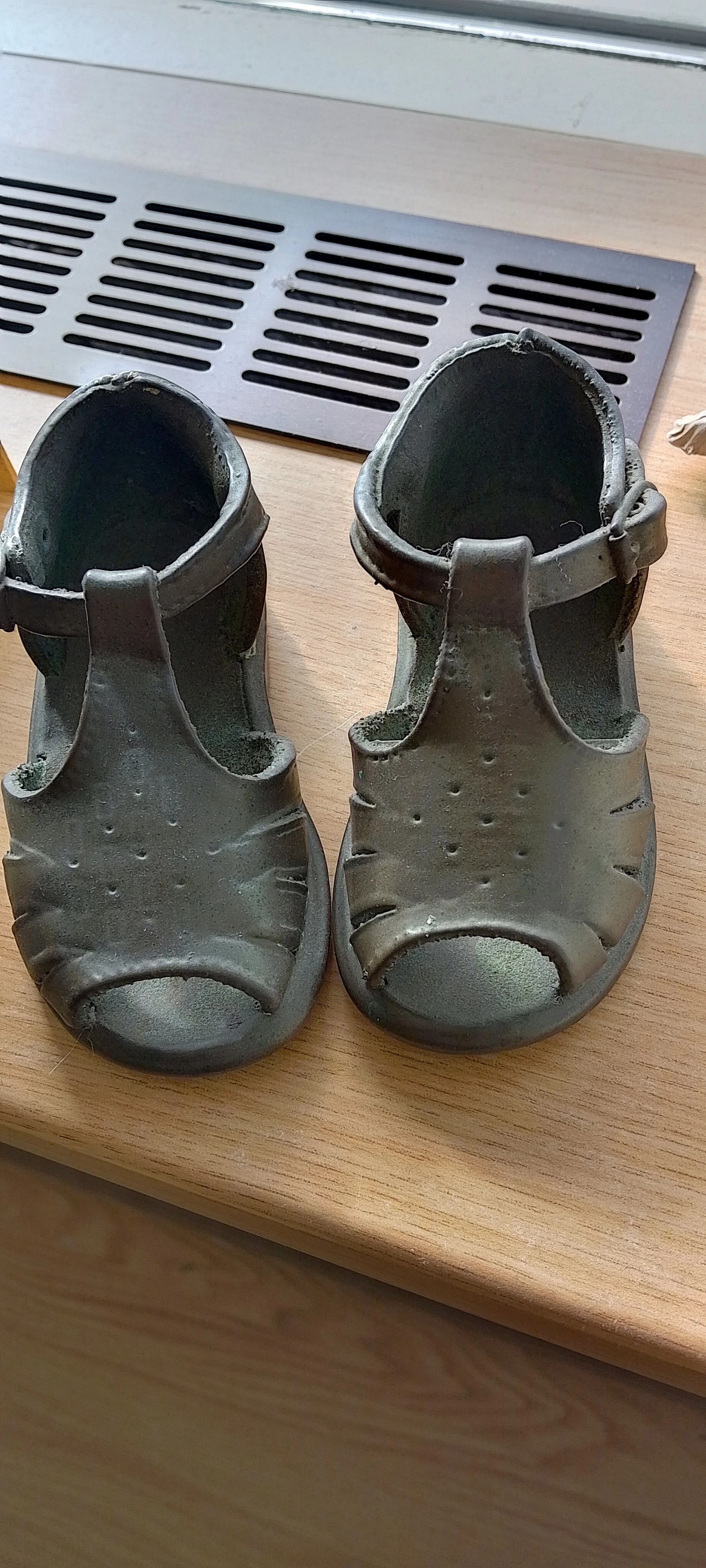 Ik heb mijn peuterschoentjes nog op zolder staan. Het was toen gebruikelijk dat je ze liet verzilveren maar dat is er nooit van gekomen. Ma had ze wel keurig in een doos staan. Het is een iets dichter modelletje maar soortgelijk als op je foto.