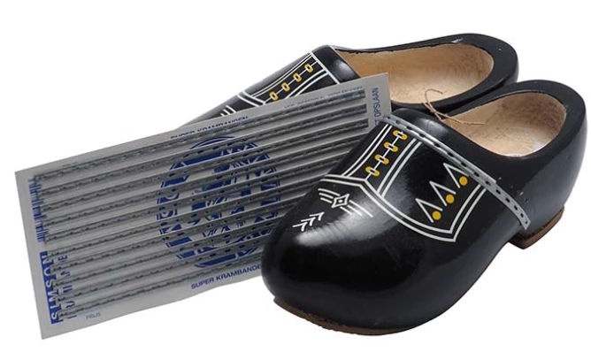 Nu we toch met footwaer bezig zijn: klompen werden in die tijd vaak uit pure armoede gerepareerd met behulp van klomp krammen. Was de onderkant versleten dan werd ik naar mijn oom gestuurd die op ons dorp fietsenmaker was. Uit een versleten en gedemonteerde buitenband werden stukken rubber geknipt en met ‘klompspijkers’ onder een versleten klomp gespijkerd. Zo kon de klomp nog een tijdje mee en was het dragen bovendien prettig en slipvast op een ondergrond van sneeuw en ijs. Wij hoefden dus niet naar de wintersport, dat deden we gewoon in Drenthe 😀. Overigens kenden we het woord ‘Wintersport’ in de 60’er jaren helemaal nog niet.