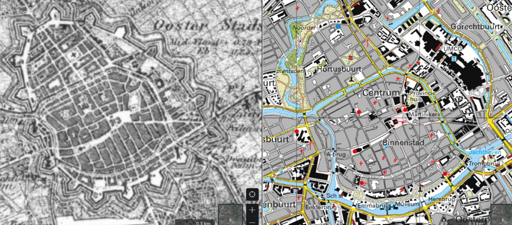Wat vet, ik kom zelf ook uit een klein dorp. Heel grappig om te zien hoe er elke paar jaar wel een paar huizen en wijken bij kwamen. Groningen was ook een stuk kleiner vroeger trouwens.
