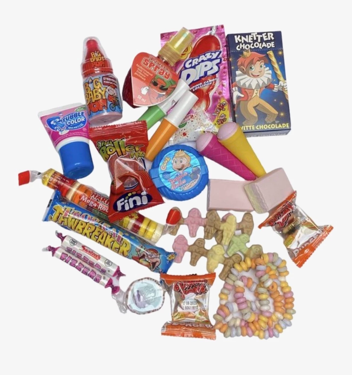 Zoute rijen van Haribo bestaan nog steeds ​@Shyrin van KPN. Die spekblokken vond ik zelfs vies. En ik zie knetterchocolade, die ken ik niet. Wel van die kleine zakjes met van de korreltjes die als een malle begonnen te knettten als je ze in de mond nam. Die kettinkjes met snoepkraaltjes werden uitgedeeld in de klas als er een kind jarig was.