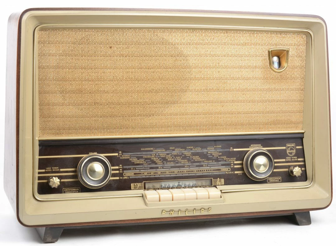 Deze radio (ongeveer) staat op zolder en als kind mocht ik deze op mijn kamer gebruiken. Geen idee hoe mijn ouders er aan kwamen. Morgen vragen: check. Het was toen al een oudje maar werkte wel gewoon. Na inschakelen moest je wachten tot er een gloed in het venstertje rechtsboven verscheen.