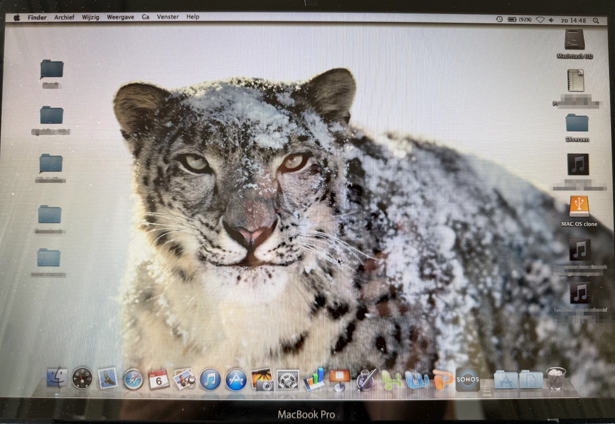 oude MacBook Pro. Je moet alleen geen haast hebben 🐌🐢. Sommige apps werken niet of niet volledig. Met een kloon van, heul oud, Snowleopard, kan ie ook opgestart worden.