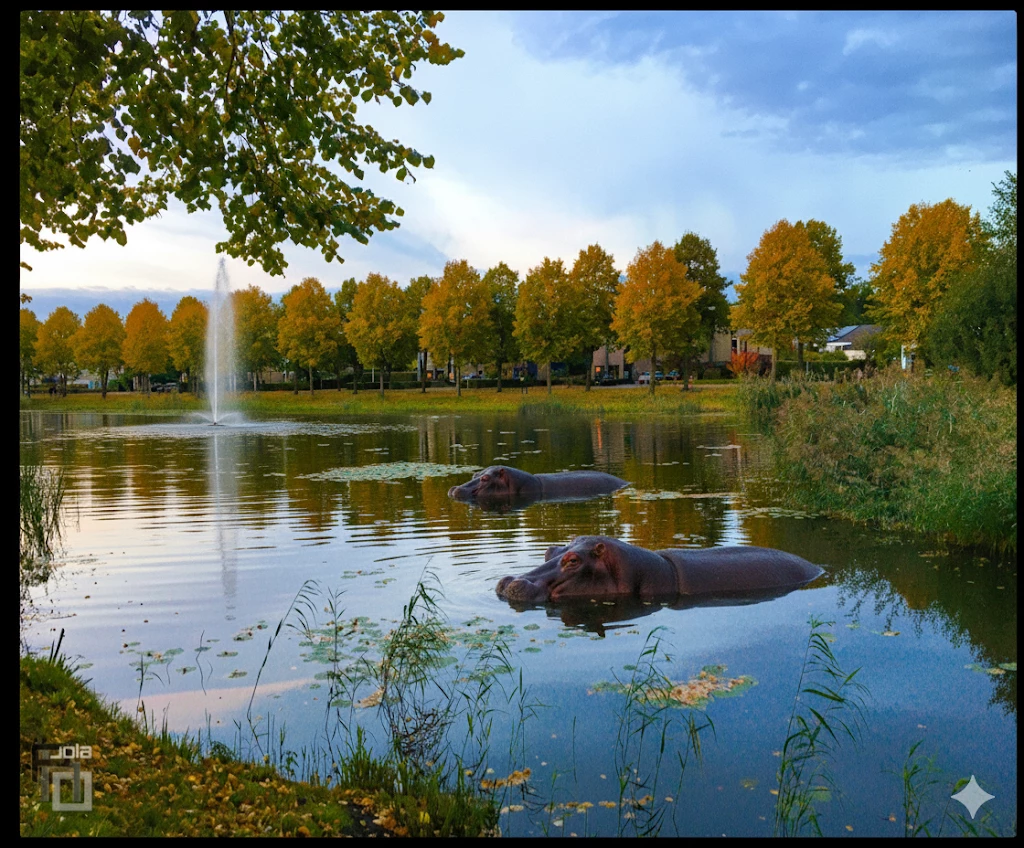 Mooie vijver ​@JoCoLa! Gelukkig zitten die nijlpaarden er niet écht in, maar het is wel een leuk plaatje 😂