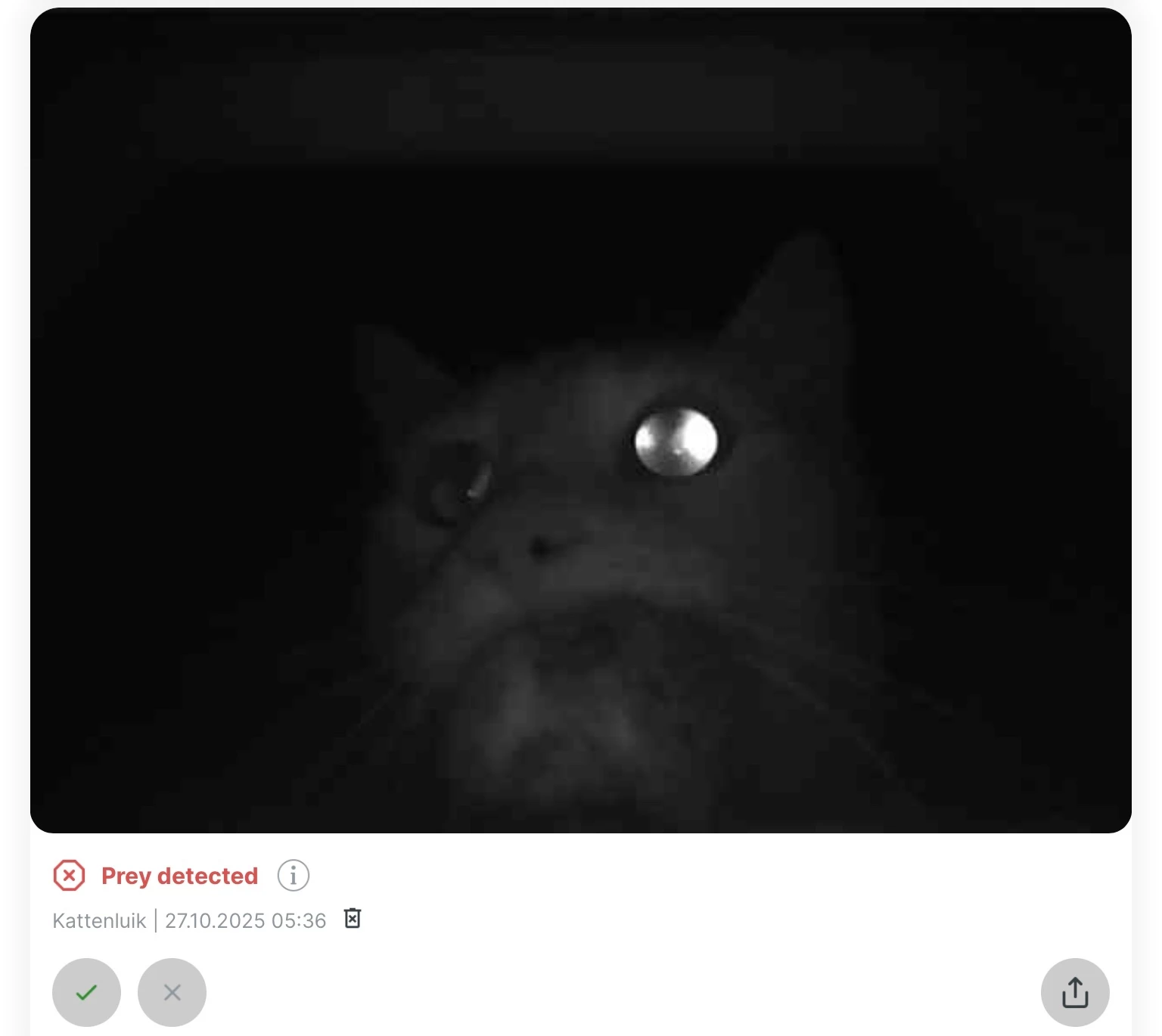 Ik heb sinds kort een slim kattenluik dat voorkomt dat er prooien mee naar binnenkomen. Het apparaat maakt een foto van de kat die naar binnen wil en AI beoordeelt of er niets in z’n bek zit. Als er een muis of vogel gezien wordt gaat het luik niet open. Werkt prima!