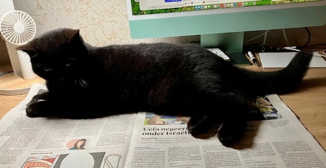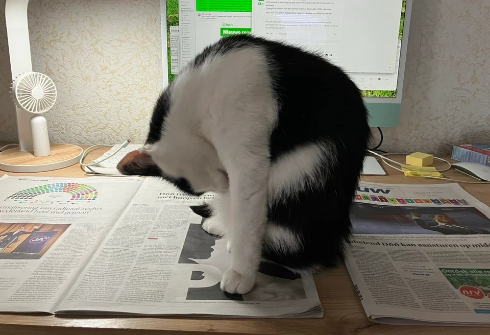 Wij hebben alleen nog de digitale krant en daar gaat Poema nooit op zitten / liggen.😂