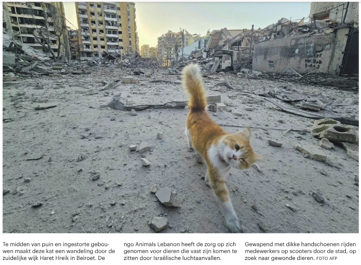 En het is verschrikkelijk dat niet alleen mensen maar ook dieren lijden in de huidige conflicten. Net als in Libanon zijn er gelukkig ook in andere conflictzones zoals Oekraïne, diverse teams en organisaties actief om dieren te redden, opvangen en verzorgen en dat vind ik dan weer erg mooi!