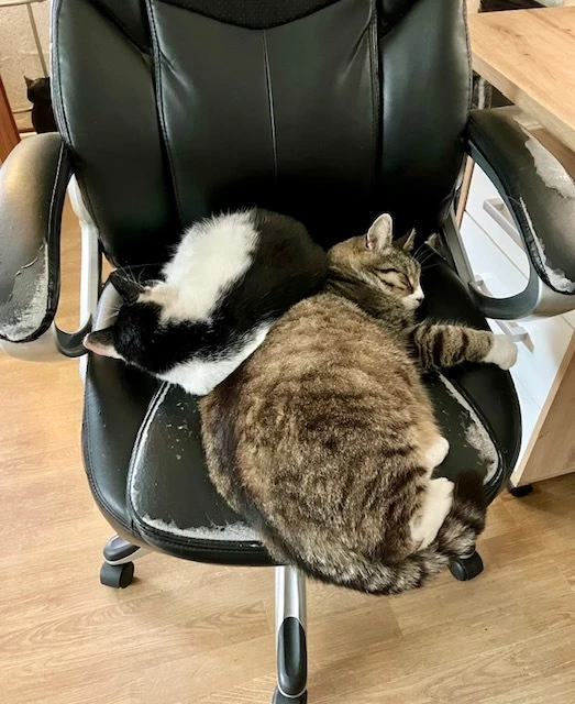 Toen wij nog een lederen computerstoel hadden, lag de kat er ook altijd op.