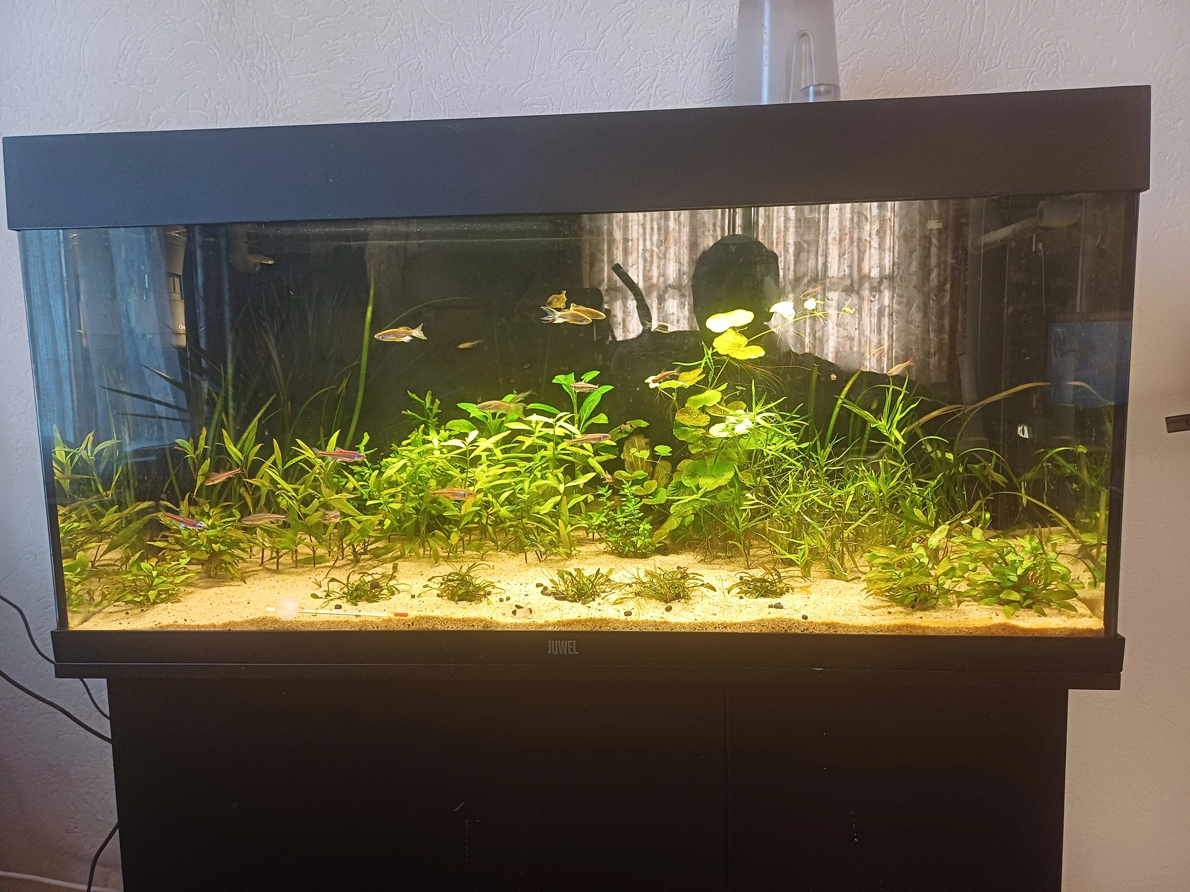 Even een update van mijn 180 liter bakje. Vanmorgen planten getopt rechts.