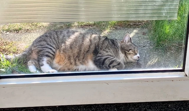 En wie ligt daar voor de deur heerlijk in het zonnetje?