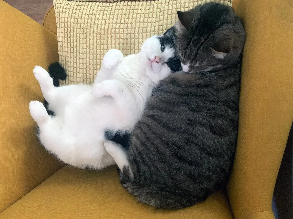 @huistijger hele leuke foto met zijn tweeën in een stoel als ik het goed gezien heb. Lekker strak tegen mekaar ze hebben het goed naar hun zin zo😁.