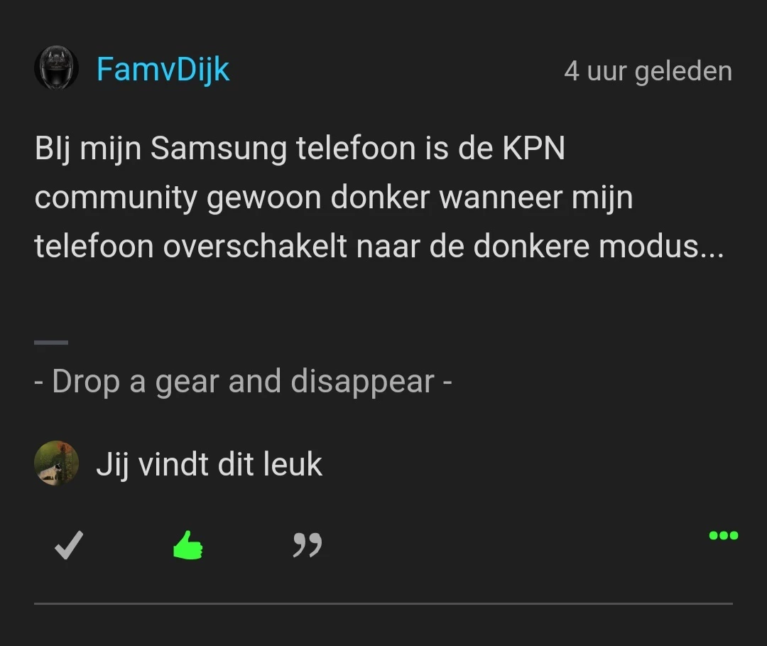 BIj mijn Samsung telefoon is de KPN community gewoon donker wanneer mijn telefoon overschakelt naar de donkere modus...