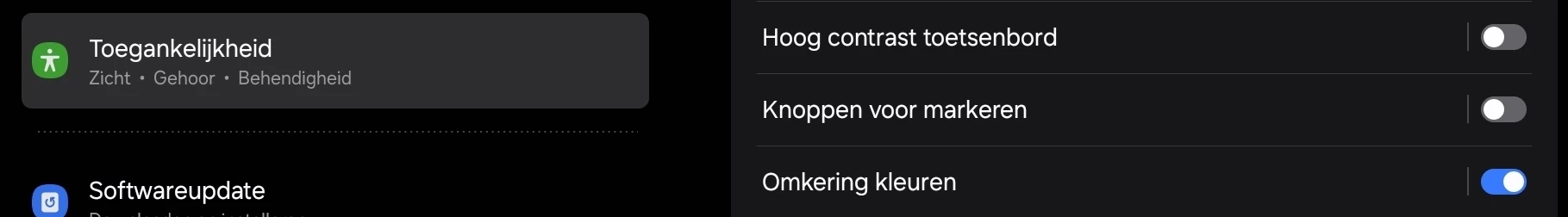 Invert is duidelijk niet hetzelfde als dark modus. Als ik dit op mijn Android 15 tablet activeer, heeft dat een negatief effect op de dark modus setting.