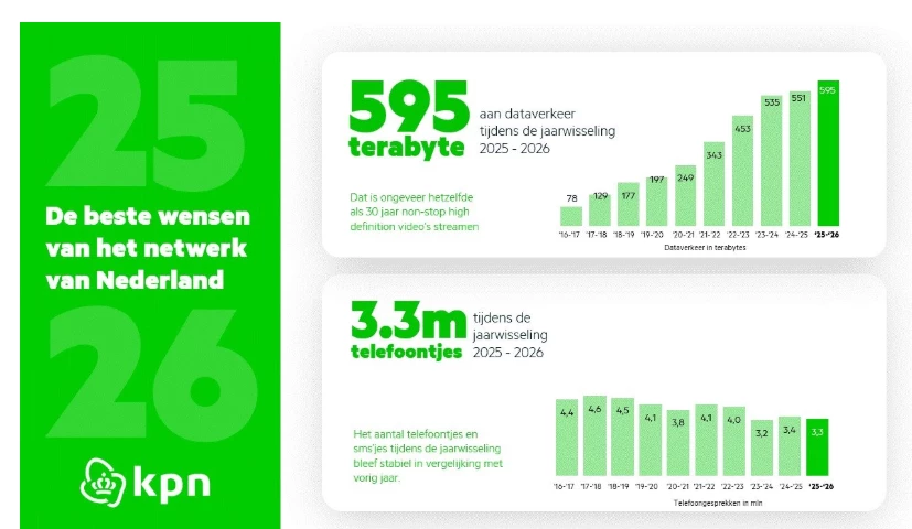Nieuwjaarsnacht 2026: Recorddrukte op het KPN-netwerk