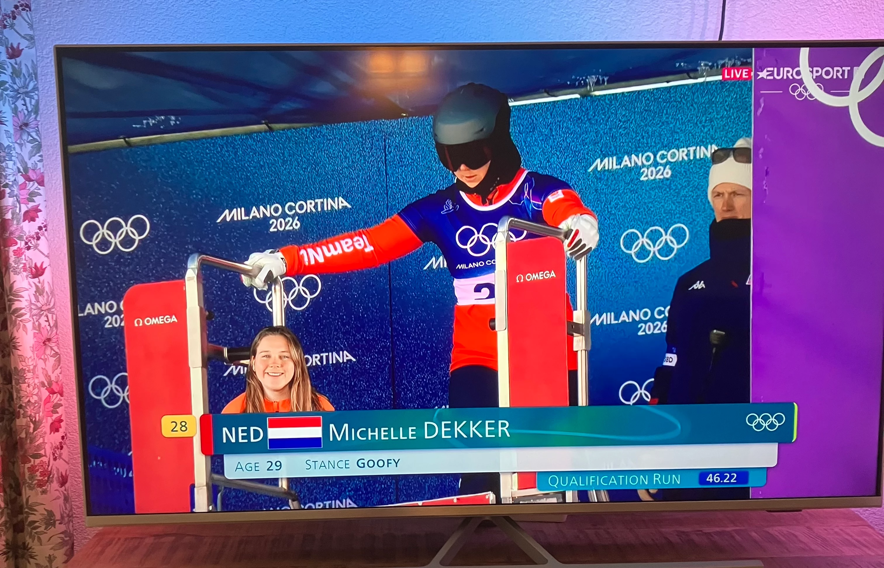 Vanochtend om 9.00 de TV al aangezet voor het snowboarden met Michelle. En ja, ze heeft zich net geplaatst voor de finales van vanmiddag.