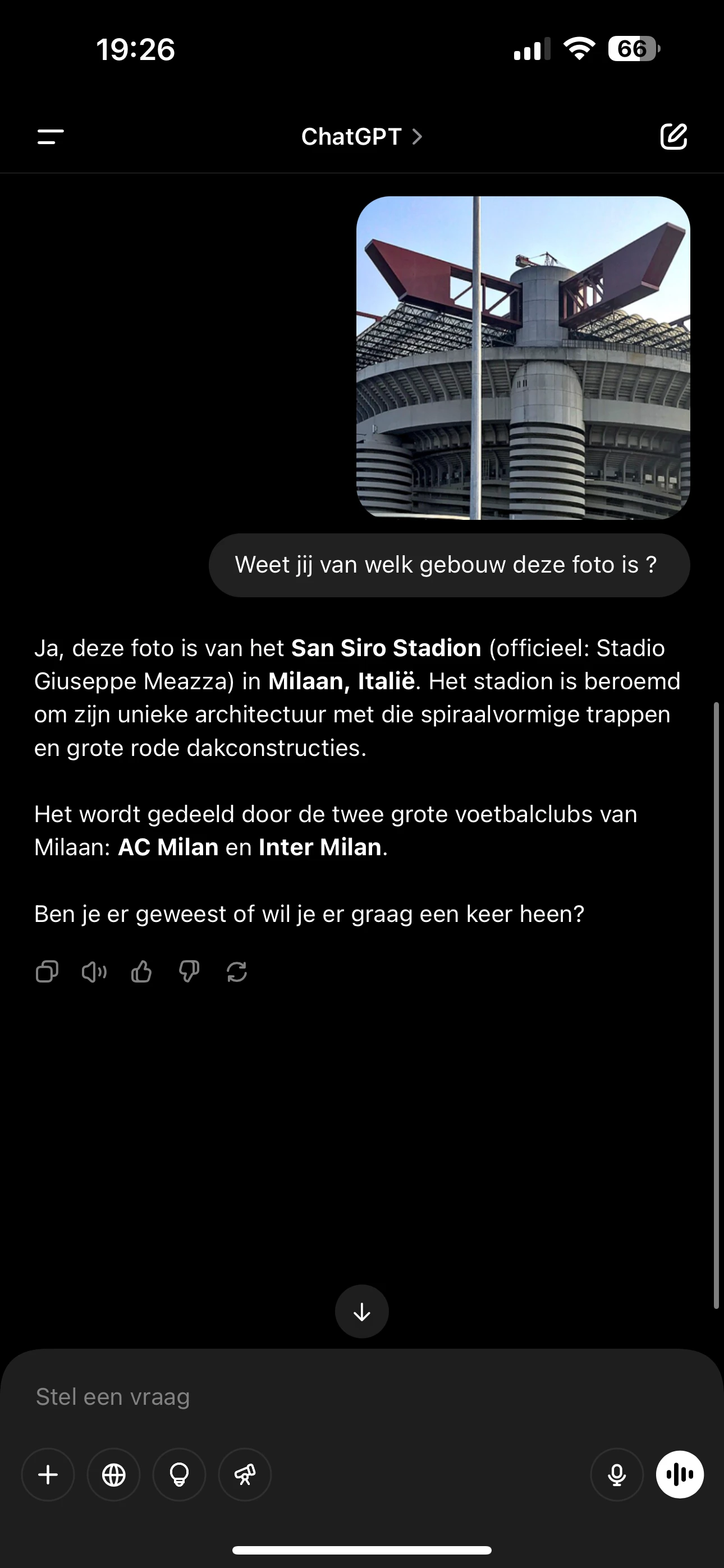 Dat klopt helemaal ​@TDN. De foto is 1 van de zijkanten van het San Siro stadion in Milaan.