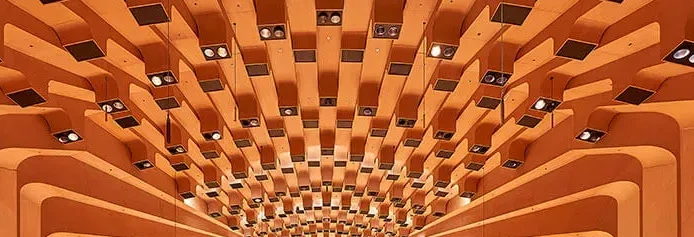 Lijkt mij een architectonisch verantwoord plafond in een entree van een theater
