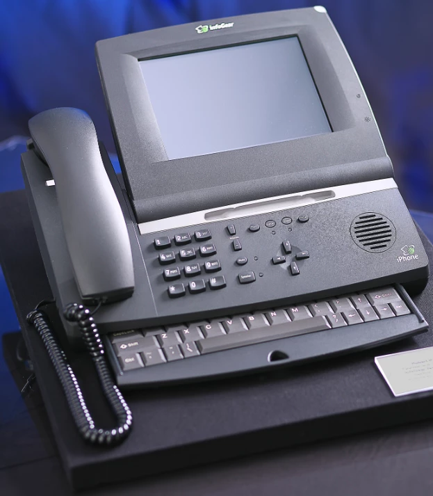 Dat was toch zo’n internet-telefoon met touchscreen, beetje palmtop achtig maar dan voor op je bureau.