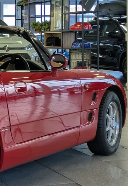 @Thomas van KPN Een rood auto? Aangezien het witte auto een Suzuki is, neem ik aan een Suzuki Cabrio?