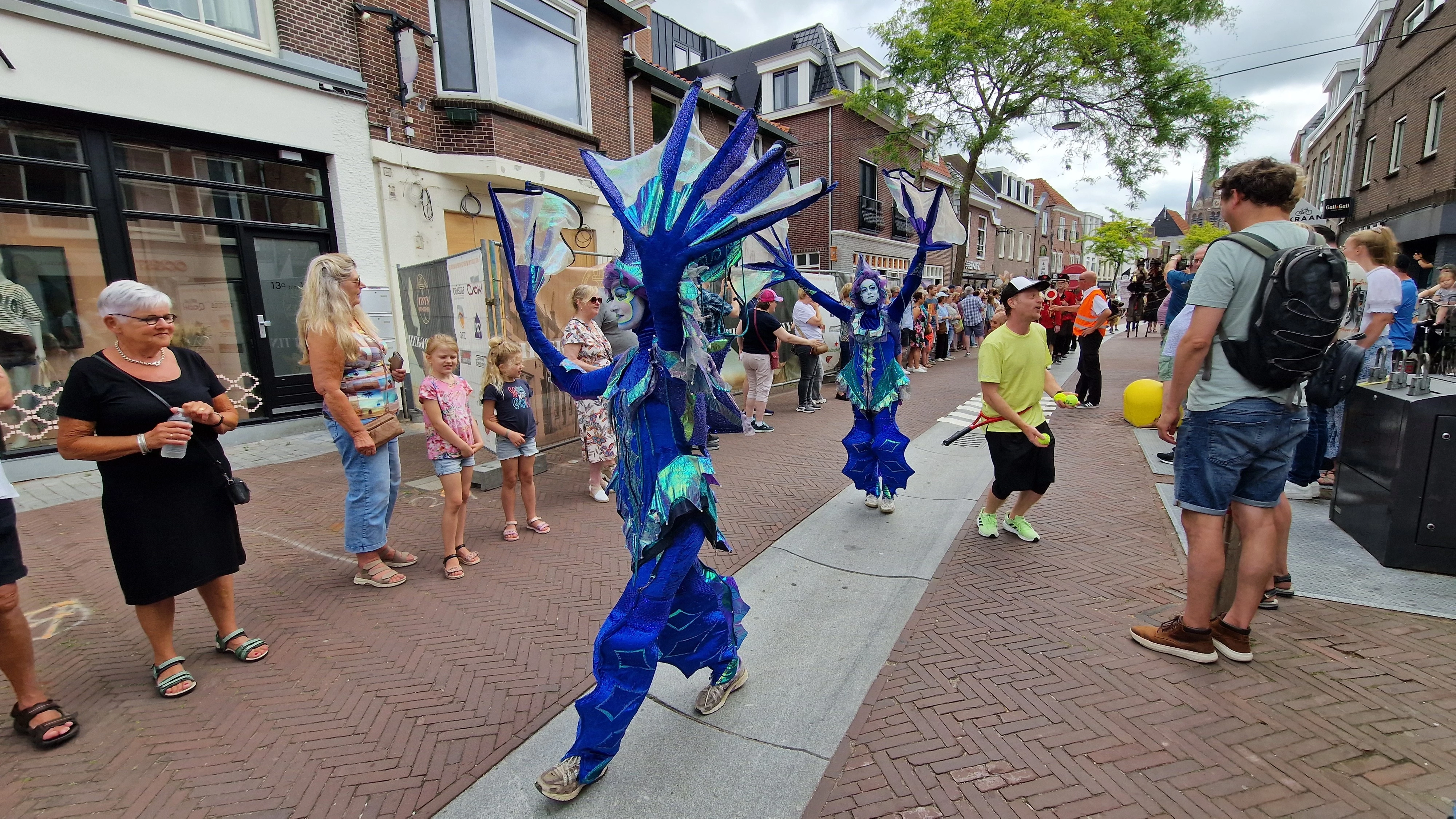 Waar ik blij van wordt? Leuke acts op het straattheater festival in de stad! Altijd is het weer verrassend en amusant wat de organisatie binnengehaald heeft aan artiesten.