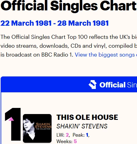 This Ole House heeft dus 2 keer op nummer 1 gestaan, door Rosemary Clooney in 1954 en door Shakin’ Stevens in 1981: