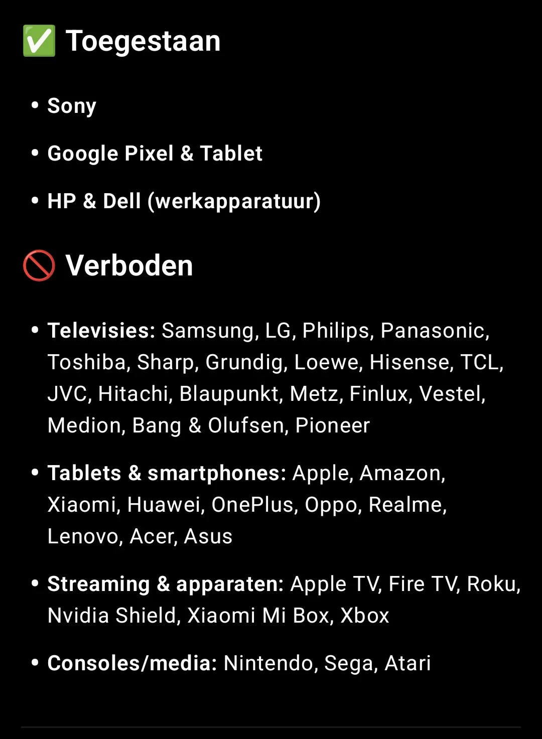 Merken die ik nooit zal kopen is LG en Samsung.