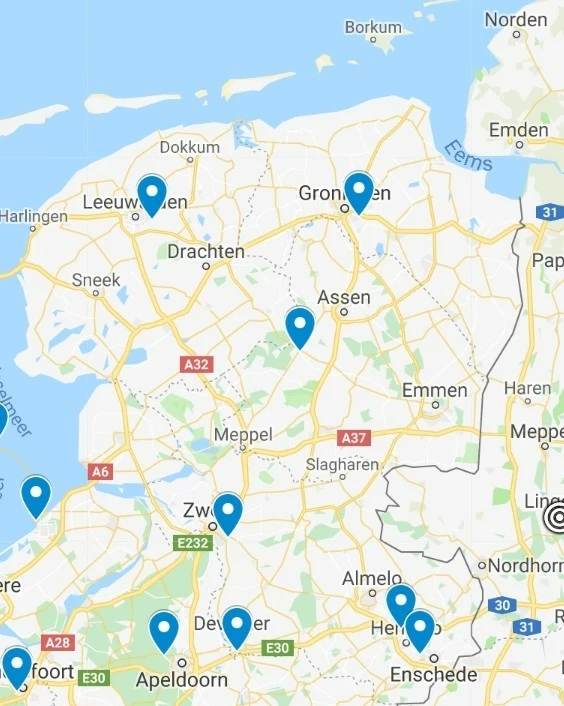 Vreemd trouwens dat in het oosten er twee ogenschijnlijk kort bij elkaar staan. Borne of toch Hengelo en Enschede.