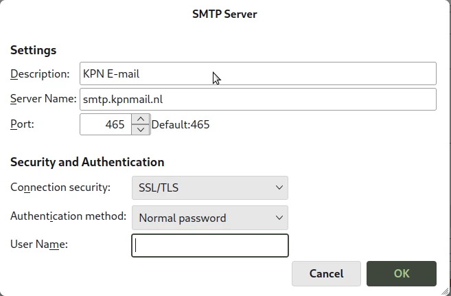 Als ik bij user name niks invul werkt utgaande mail niet.