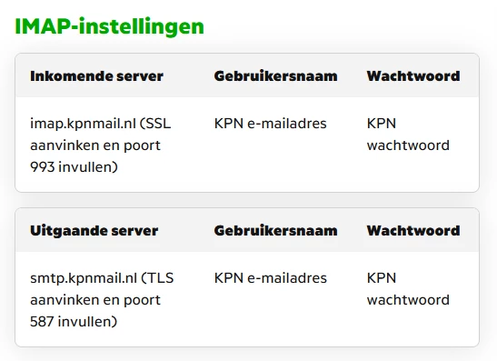 De melding over de KPN mailservers verbaast me een beetje, wordt er misschien nog gebruik gemaakt van de oude planet mailservers? Dit zijn de actuele serverinstellingen: