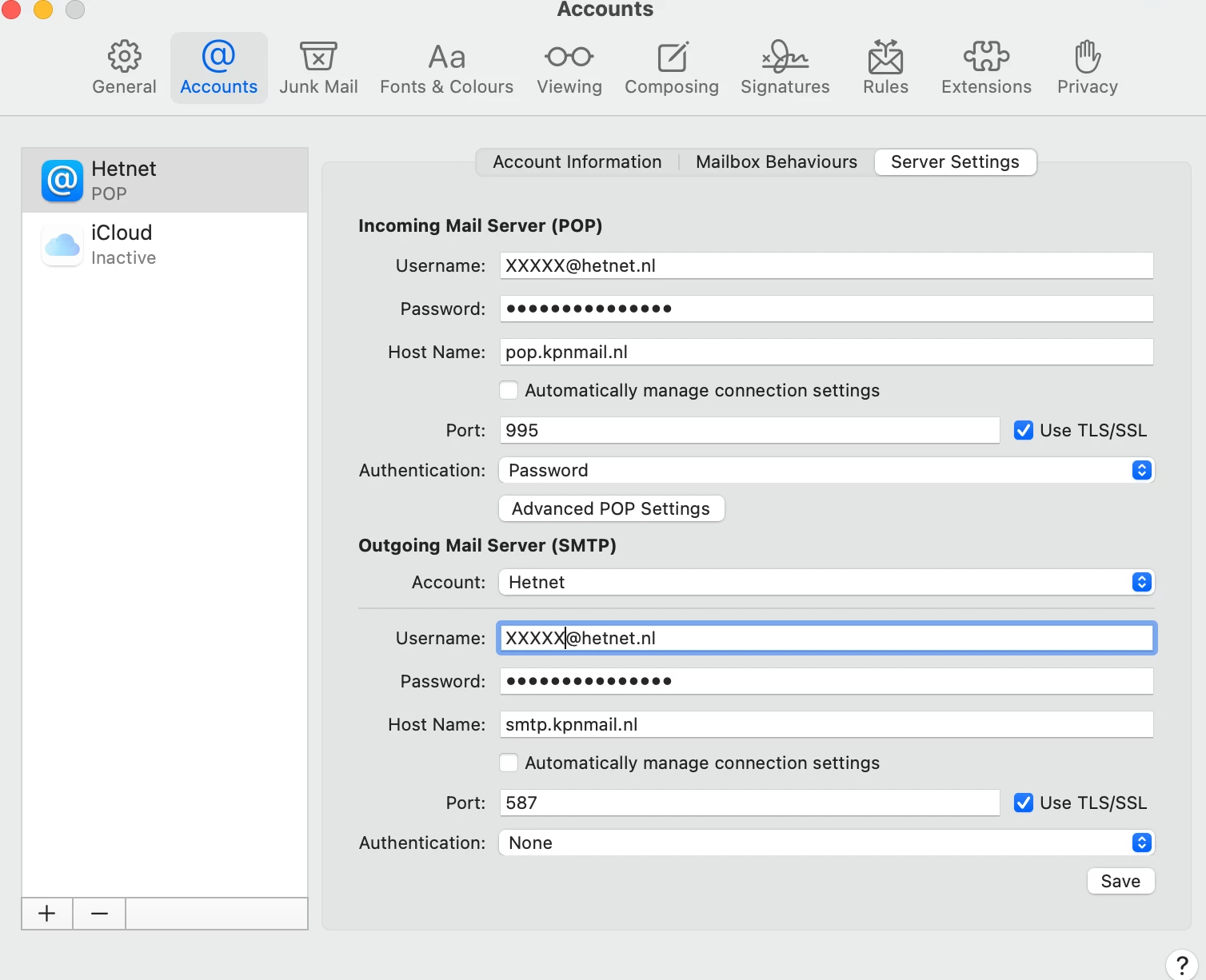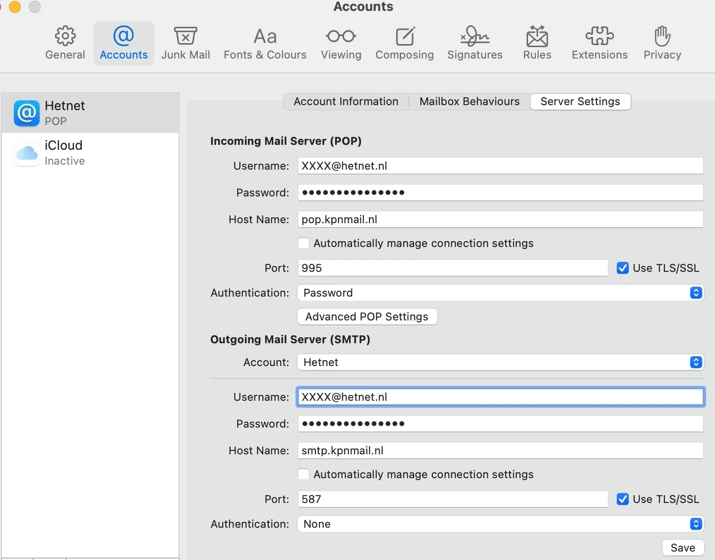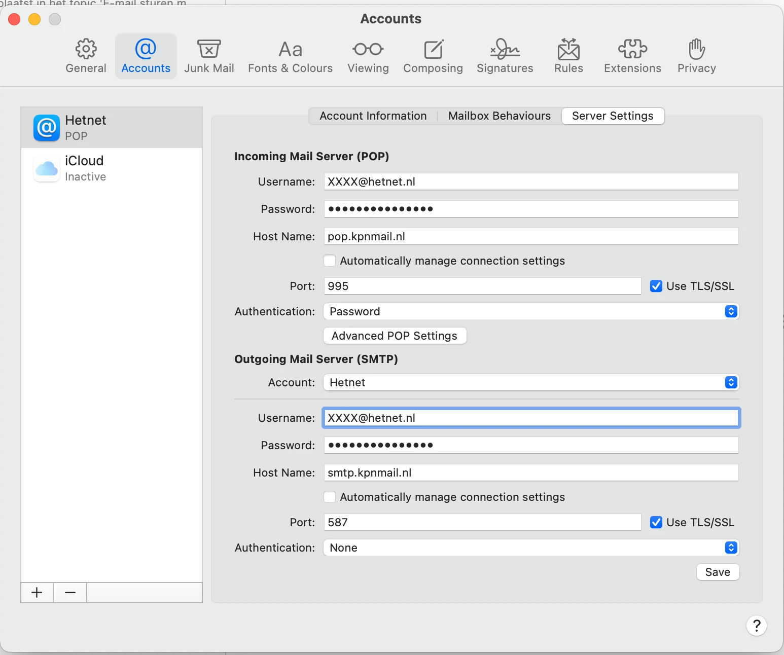 Mail op macOS: POP voor inkomende server