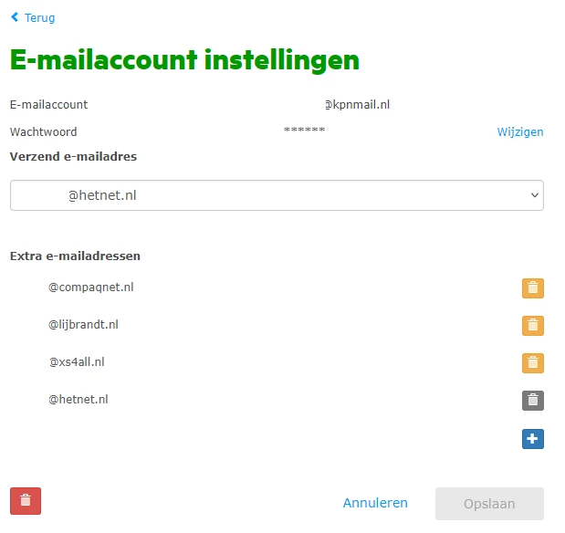 Een alias heeft hetzelfde wachtwoord als het emailaccount waar het aanhangt.