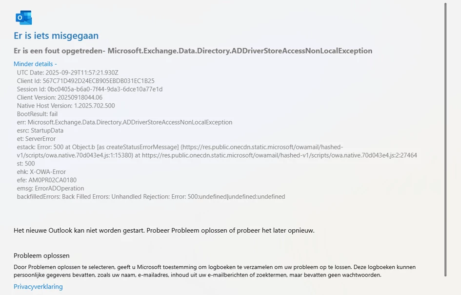 @Michel A. Fout ' er is iets misgegaan ' met fout ADDriverStoreAccessNonLocalException
