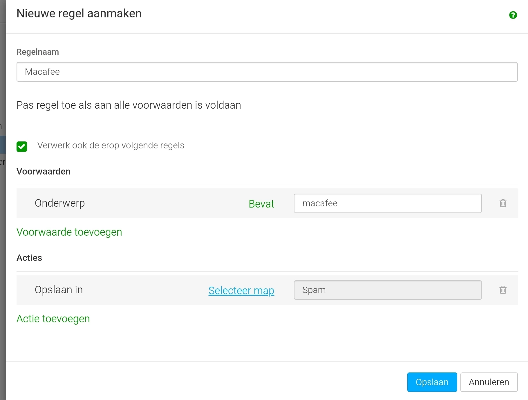 Normaal gesproken niet. Maar voor mcaffee spam kan best een uitzondering voor gemaakt worden. Gewoon alle mail waar dat woord in voorkomt in de spammap plaatsen. Heel simpel.