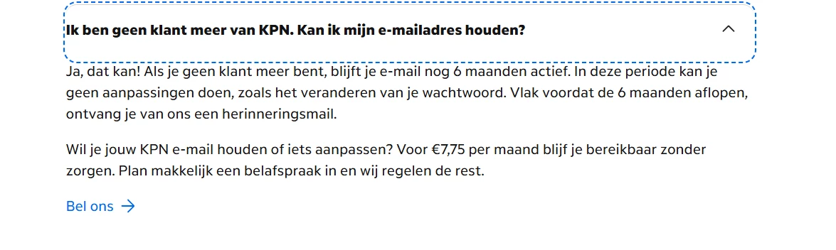 Met dat KPN e-mail-only abonnement behoudt je dus jouw KPN e-mail adressen.