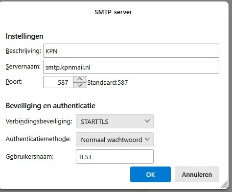 Gebruik je dan een wel een KPN emailserver (bijv.  smtp.kpnmail.nl ) ?